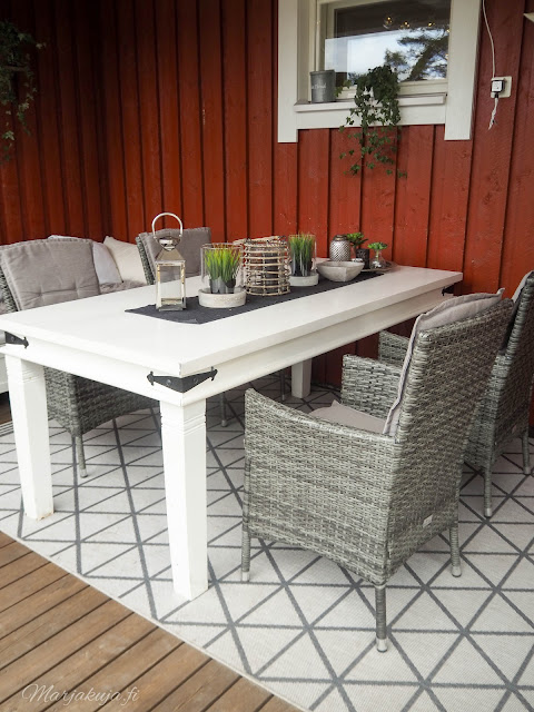 | Juhannuksen jälkeen muutin katetun terassin sisustusta. |